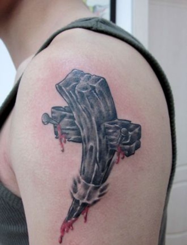 一款扎进皮肤的十字架纹身图案_十字架纹身图案大全_纹身图吧
