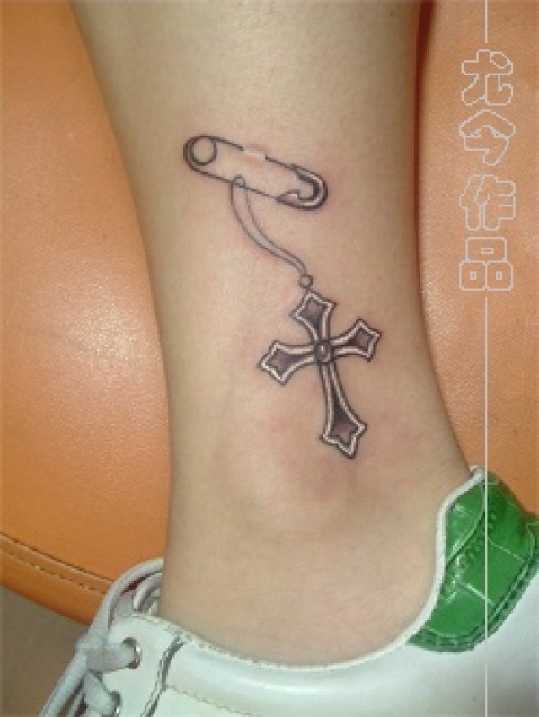 武汉最好的纹身店脚踝别针十字架纹身图案图_十字架纹身图案大全_纹身图吧
