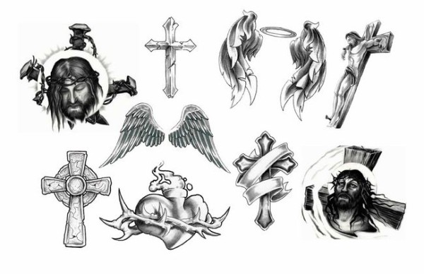几款十字架翅膀耶稣纹身图案纹身图片_十字架纹身图案大全_纹身图吧