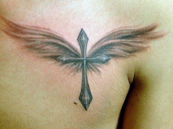十字架纹身图案胸口十字架翅膀纹身图案_十字架纹身图案大全_纹身图吧