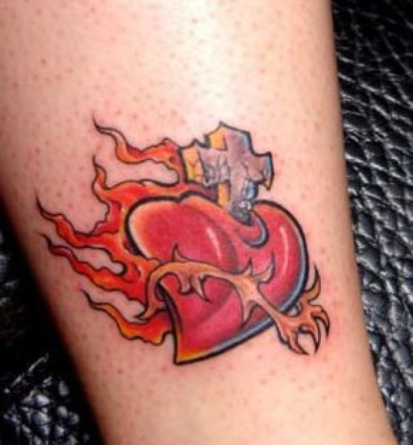 经典爱心火焰十字架纹身图案图片_十字架纹身图案大全_纹身图吧