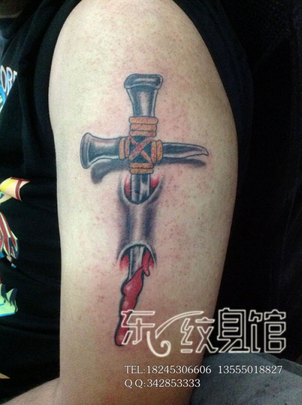 一款扎进皮肤的十字架纹身图案_十字架纹身图案大全_纹身图吧