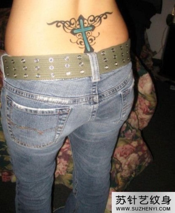 后腰时尚十字架纹身_十字架纹身图案大全_纹身图吧