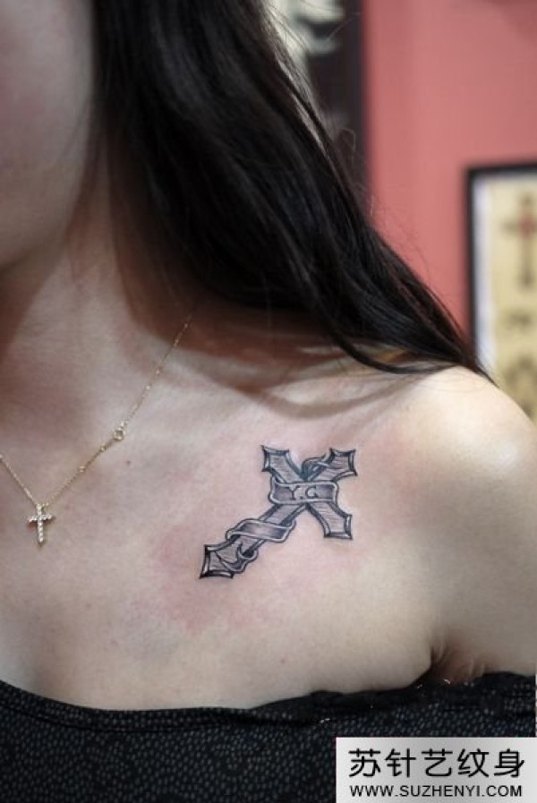 胸前时尚十字架纹身_十字架纹身图案大全_纹身图吧