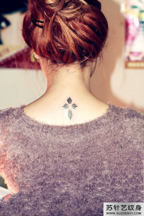 女生颈部精美的图腾十字架纹身图案_十字架纹身图案大全_纹身图吧