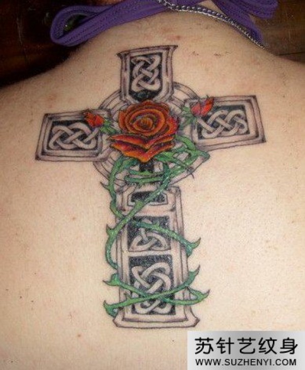 后背十字架玫瑰纹身_十字架纹身图案大全_纹身图吧