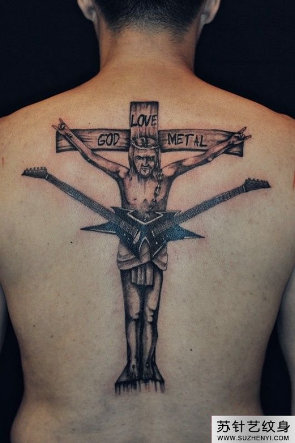背部一款十字架耶稣纹身图案_十字架纹身图案大全_纹身图吧