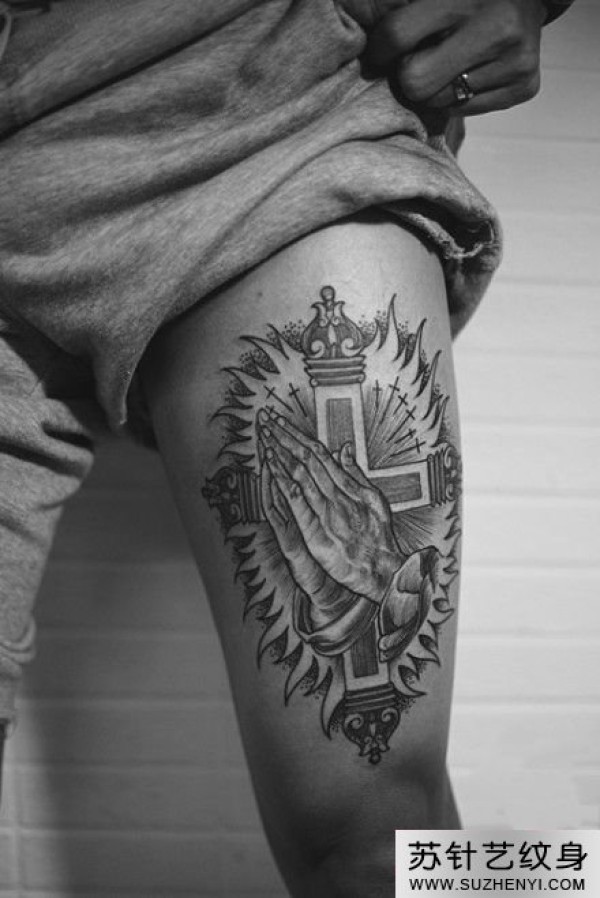 十字架双手祈祷纹身_十字架纹身图案大全_纹身图吧