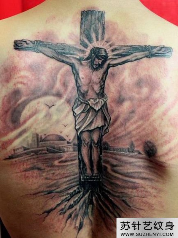 背部创意时尚十字架耶稣受刑纹身_十字架纹身图案大全_纹身图吧