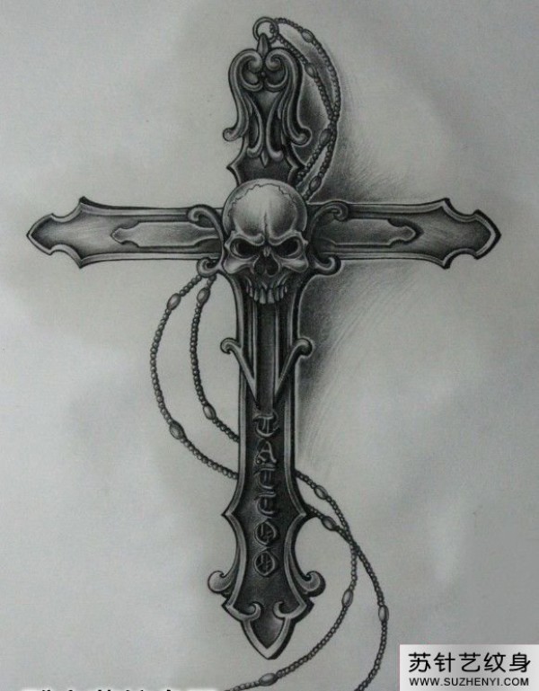 时尚骷髅十字架纹身手稿_十字架纹身图案大全_纹身图吧