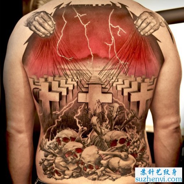满背骷髅十字架纹身图案_十字架纹身图案大全_纹身图吧