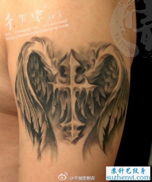 精美好看的十字架翅膀纹身图案_十字架纹身图案大全_纹身图吧