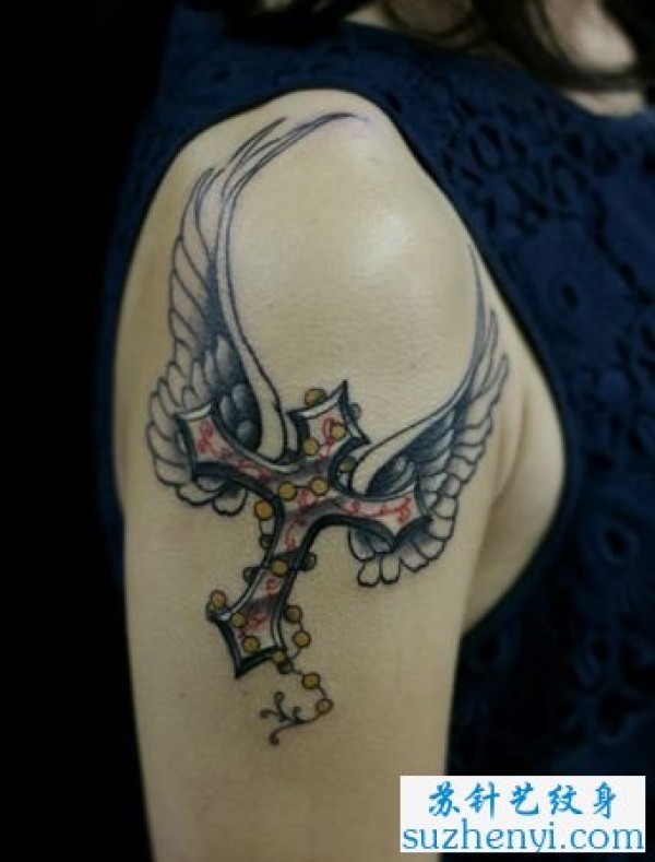 手臂十字架翅膀纹身图案_十字架纹身图案大全_纹身图吧