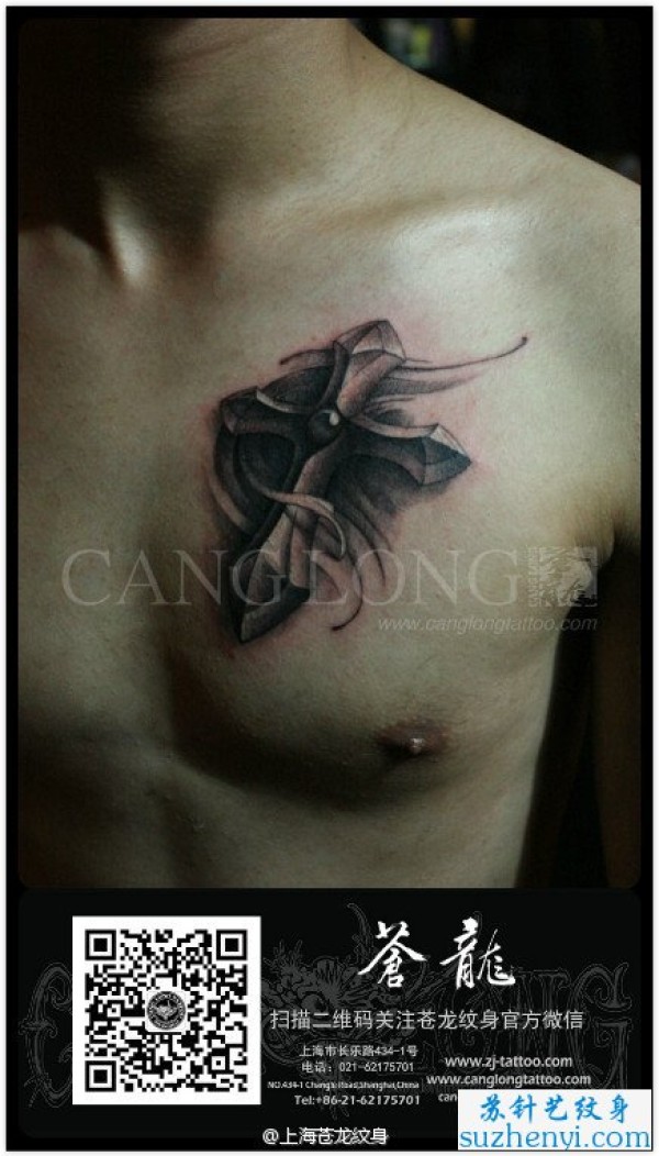 胸部漂亮的彩色十字架纹身图案_十字架纹身图案大全_纹身图吧