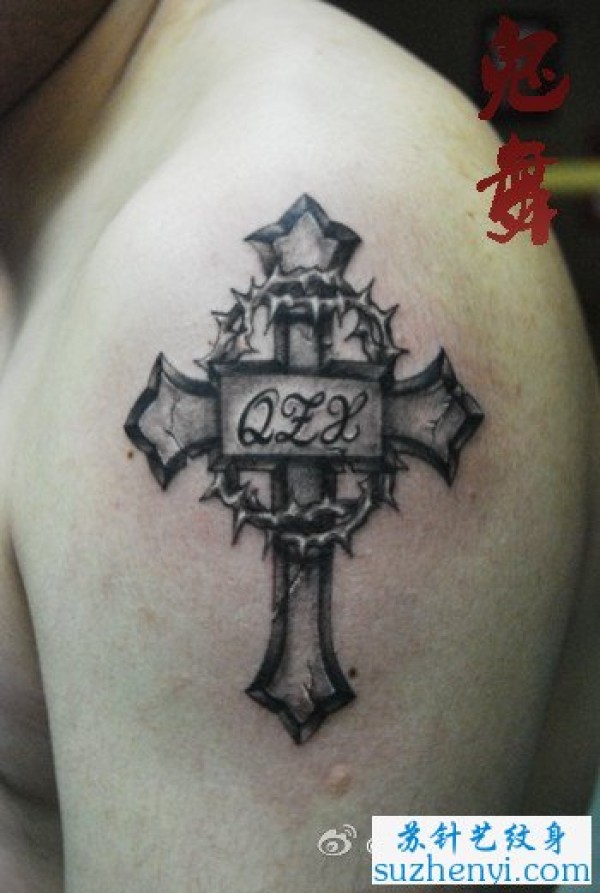 手臂十字架与字母纹身_十字架纹身图案大全_纹身图吧