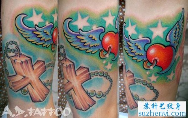 精美的爱心与十字架纹身_十字架纹身图案大全_纹身图吧