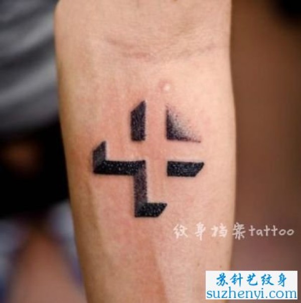 一款扎进皮肤的十字架纹身图案_十字架纹身图案大全_纹身图吧