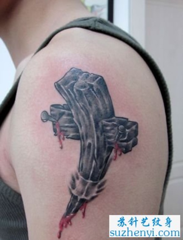 一款扎进皮肤的十字架纹身图案_十字架纹身图案大全_纹身图吧