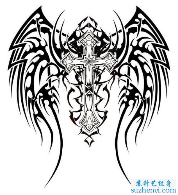 图腾翅膀与十字架纹身图案_十字架纹身图案大全_纹身图吧