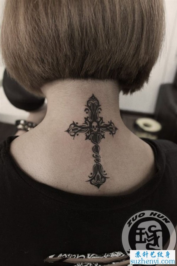 女生颈部精美的图腾十字架纹身图案_十字架纹身图案大全_纹身图吧