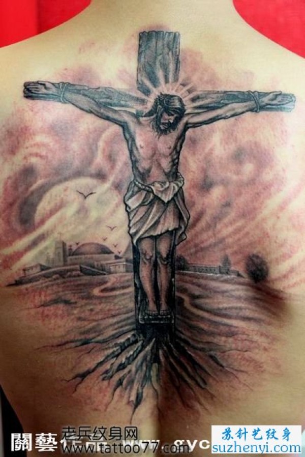 背部耶稣十字架纹身_十字架纹身图案大全_纹身图吧