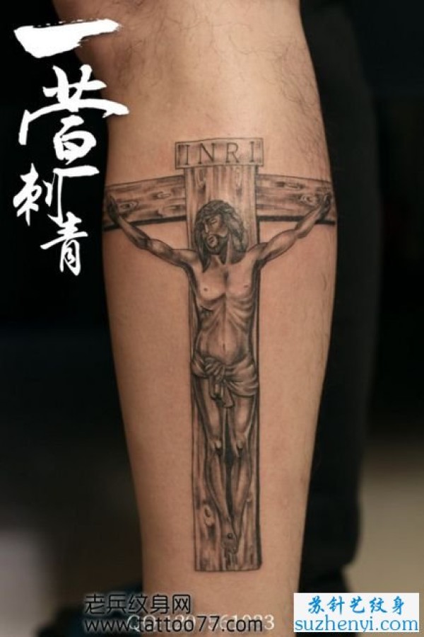 腿部十字架耶稣纹身_十字架纹身图案大全_纹身图吧