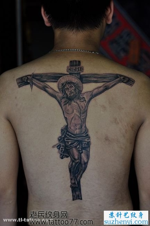 背部十字架耶稣纹身_十字架纹身图案大全_纹身图吧