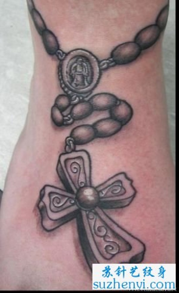 腿部好看的十字架吊链纹身图案_十字架纹身图案大全_纹身图吧