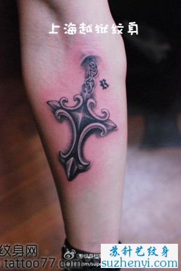 腿部十字架吊链纹身_十字架纹身图案大全_纹身图吧