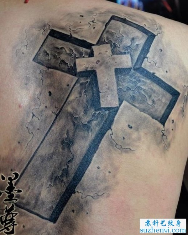 背部烙印地裂十字架纹身_十字架纹身图案大全_纹身图吧