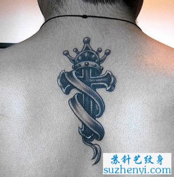 背部十字架皇冠纹身_十字架纹身图案大全_纹身图吧