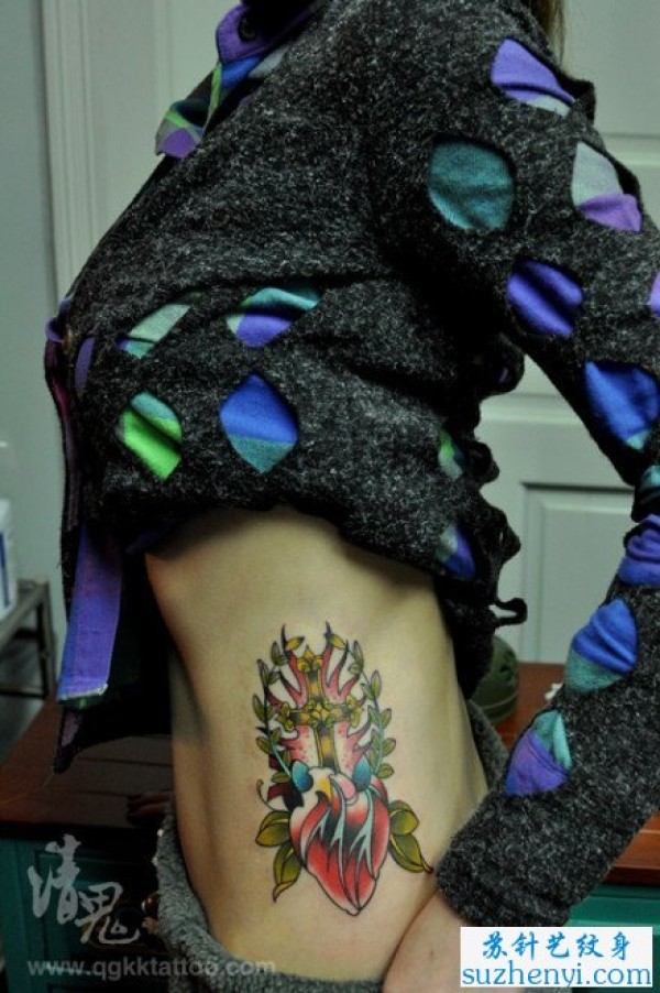侧腰十字架心脏纹身_十字架纹身图案大全_纹身图吧