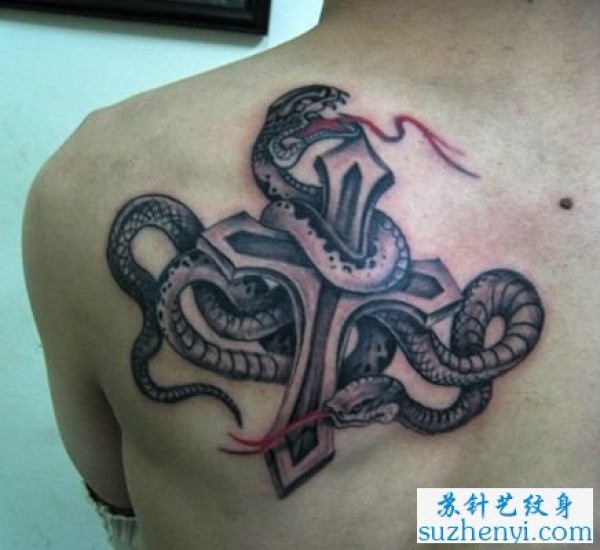 肩背十字架蛇纹身_十字架纹身图案大全_纹身图吧