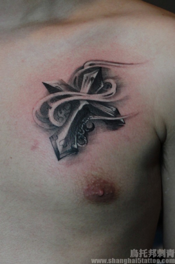 胸部漂亮的彩色十字架纹身图案_十字架纹身图案大全_纹身图吧