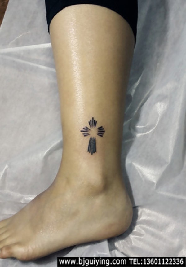 脚踝上的袖珍十字架现代纹身风格_十字架纹身图案大全_纹身图吧