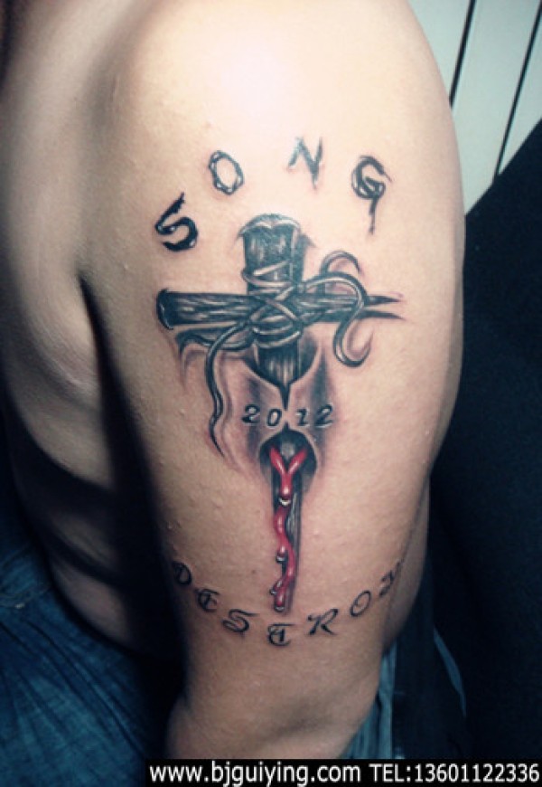 一款扎进皮肤的十字架纹身图案_十字架纹身图案大全_纹身图吧