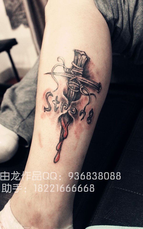 男生小腿十字架纹身_十字架纹身图案大全_纹身图吧