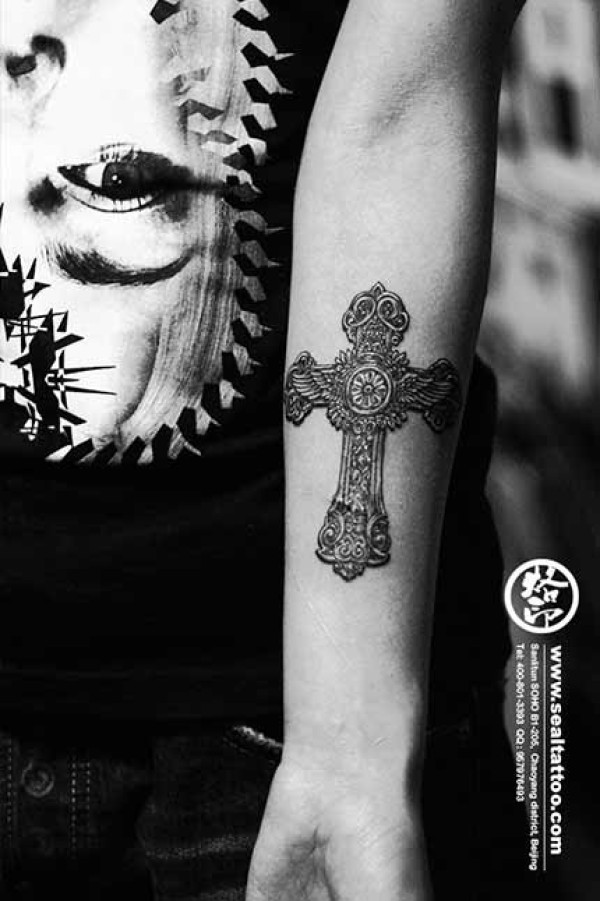 小臂十字架纹身图案_十字架纹身图案大全_纹身图吧