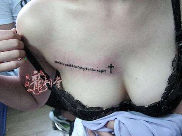 胸部漂亮的彩色十字架纹身图案_十字架纹身图案大全_纹身图吧