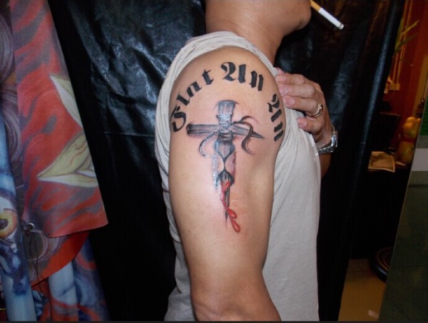 一款扎进皮肤的十字架纹身图案_十字架纹身图案大全_纹身图吧