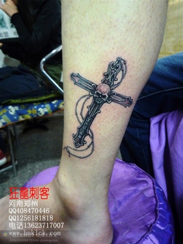腿部好看的十字架吊链纹身图案_十字架纹身图案大全_纹身图吧