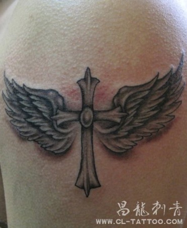 十字架与翅膀_男士小图_十字架纹身图案大全_纹身图吧