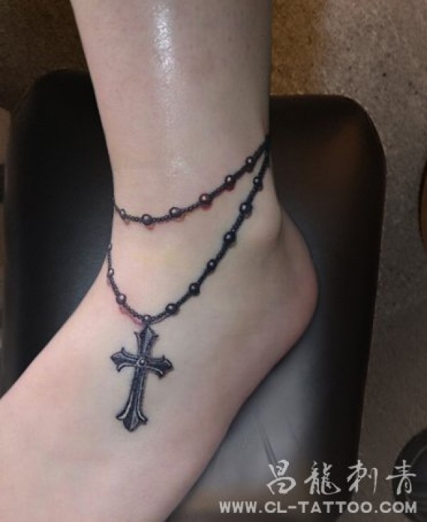 脚链十字架纹身_女生黑白_十字架纹身图案大全_纹身图吧