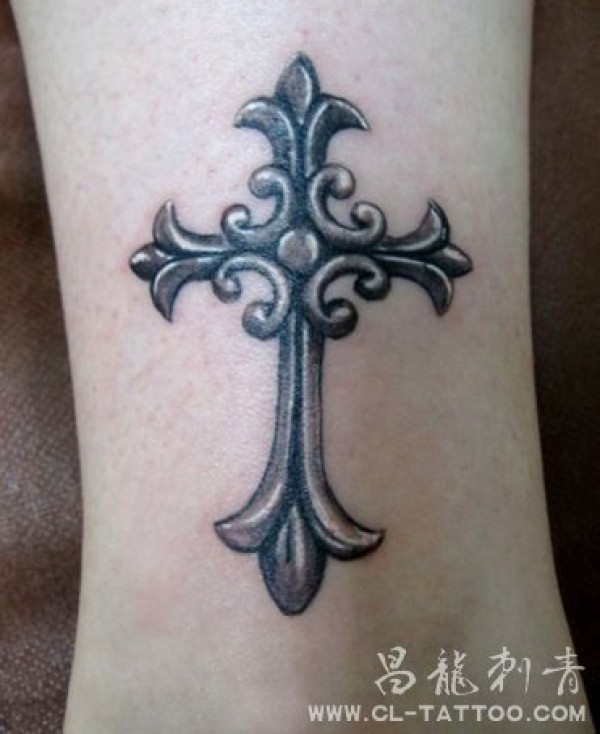 腿部好看的十字架吊链纹身图案_十字架纹身图案大全_纹身图吧