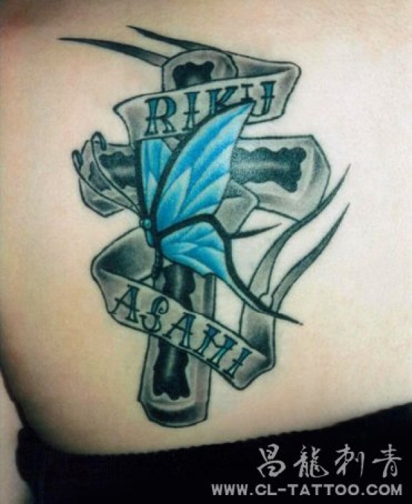 十字架蝴蝶纹身_女生彩色_十字架纹身图案大全_纹身图吧