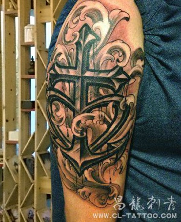 十字架与锚_男士小图_十字架纹身图案大全_纹身图吧