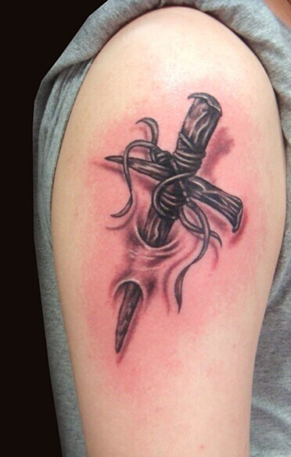 一款扎进皮肤的十字架纹身图案_十字架纹身图案大全_纹身图吧