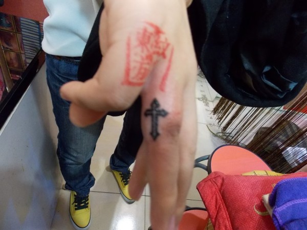 一款扎进皮肤的十字架纹身图案_十字架纹身图案大全_纹身图吧
