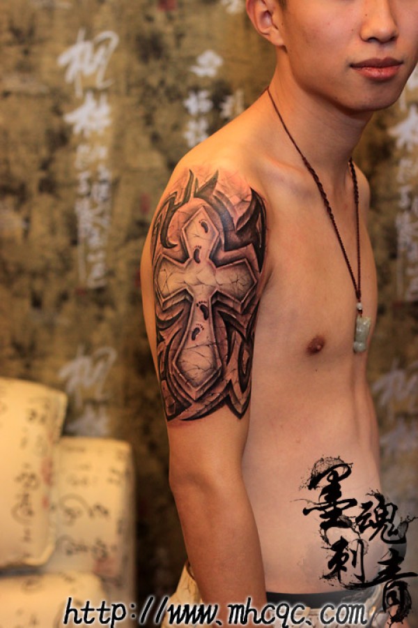 石裂十字架纹身_十字架纹身图案大全_纹身图吧