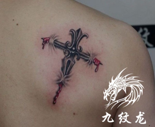 一款扎进皮肤的十字架纹身图案_十字架纹身图案大全_纹身图吧